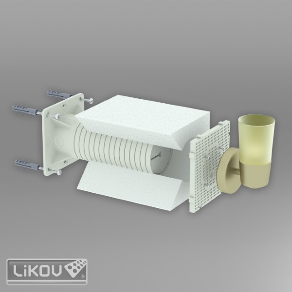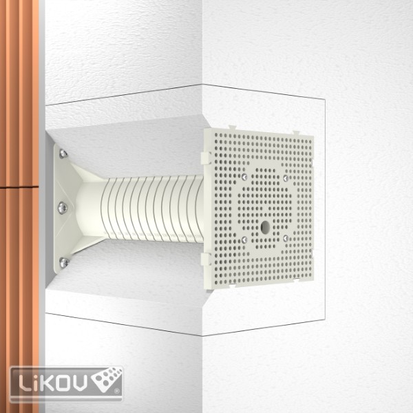 Pred montážou je nutné zrezať nosič vrátane priloženej izolácie na potrebnú dĺžku podľa hrúbky izolačnej vrstvy. Nosič sa pripevní k stene pomocou priložených hmoždiniek podľa typu muriva a skrutiek. Pri montáži zásuvky 400 V sa odporúča pripevnenie nosiča pomocou chemických kotiev. Nosičom sa pretiahne kábel a vloží skrátená izolácia. Pomocou 4 priložených skrutiek sa k nosiču pripevní krabica prípadne doska, na ktoré sa vykoná finálna montáž. Pre montážnu dosku sú vhodné skrutky s priemerom 4 až 5 mm. Podrobný návod na inštaláciu je súčasťou balenia. Do krabice je povolené inštalovať iba prístroje s krytím zodpovedajúcim prostrediu použitia. Videonávod je k dispozícii na stránkach https://likov.sk/media.
