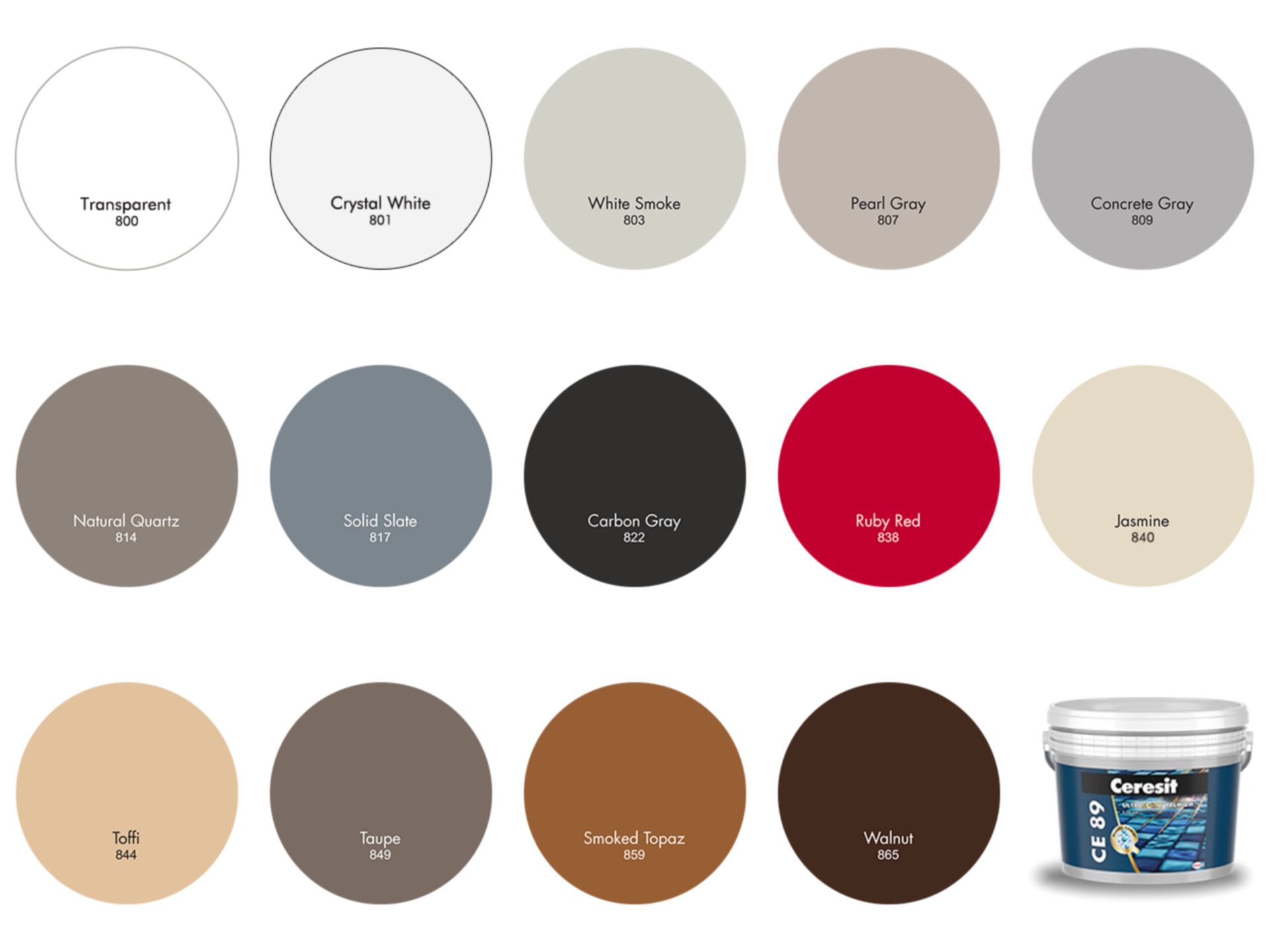 CERESIT® CE 89 je určená na chemicky odolné lepenie a škárovanie keramických obkladov, dlažieb a mozaiky ako sú: obytné, verejné a priemyselné priestory, obklady v kúpeľniach, sprchách, bazénoch, nádržiach s termálnou alebo brakickou vodou, saunách a parných kúpeľoch, ďalej na podlahové vykurovanie, terasy a balkóny. Vhodná pre styk s potravinami. Ideálne na lepenie a škárovanie keramických krytín v oblastiach vystavených agresívnym látkam alebo mechanickým vplyvom. Balenie: 2,5 kg